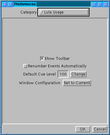 Der Knopf Set to Current bewirkt, daß die zu den Kanal-Konfigurationen gehörige Preference auf die momentanen Einstellungen gesetzt wird. Ein Druck auf Ok bewirkt, daß die Preferences abgespeichert werden und beim nächsten Start wieder zur Verfügung stehen.